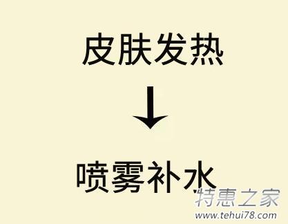 方法:最简单有效的方法就是随身携带一瓶小喷雾,以备能及时在各个发热的部位喷上。