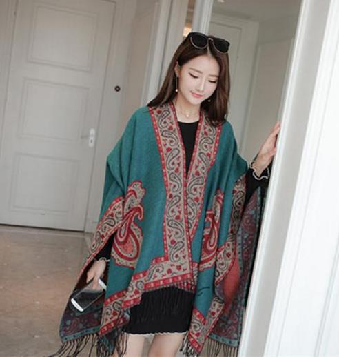 做工精致的斗篷外套,双面双色设计,享受无拘无束,知性与优雅,带有民族风特色的印花,潮流时尚