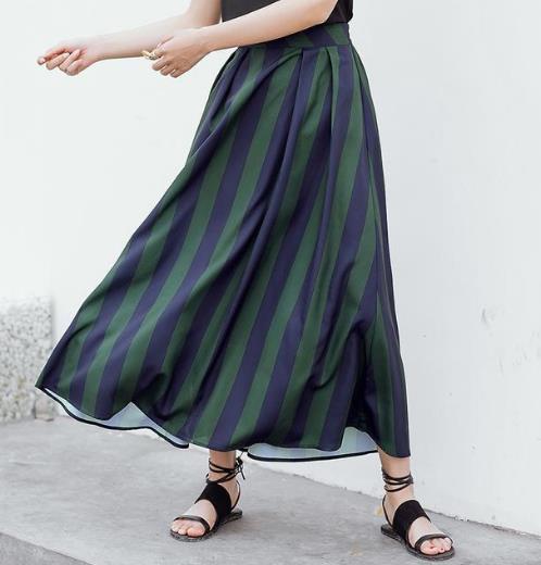 蓝绿色条纹面料制作的半身裙,采用了紧高腰的款式设计,使这条半身裙穿起来,能够突显出你的小蛮腰。