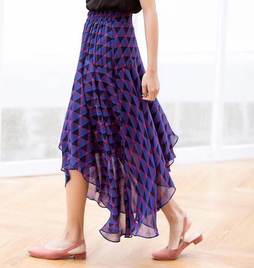 几何图形的雪纺面料制作的半身裙,采用了不规则的大裙摆设计,穿起来能够衬托出你清新脱俗的气质。