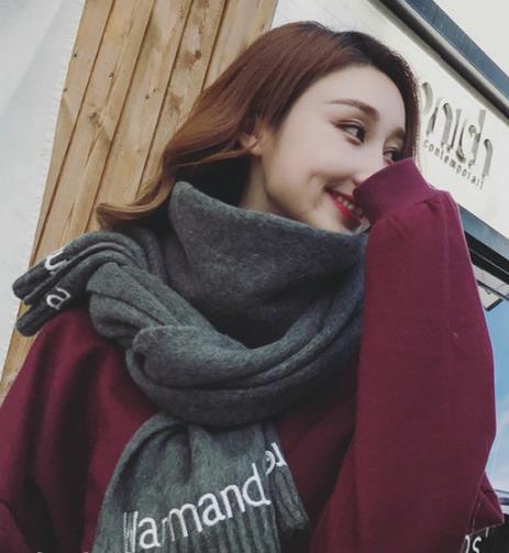 深灰色的围巾看起来低调优雅,又有点帅气,越来越多地被小仙女们喜爱。这样的灰色深浅恰到好处,很好搭配衣服,出门前围一围,非常保暖。