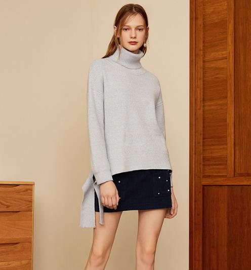 对于寒冷的冬季来说,选对毛衣,保暖绝对是考量指标之一。高领是对女人颈部的最佳呵护,高级灰的搭配性也很高,搭配藏青色的半身裙,干练利落,是职场女性很好的选择。