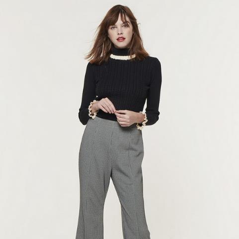 黑色毛衣是冬天的万能打底,亮点不用太多一点就够,撞色木耳边点亮整体,修身毛衣+喇叭或阔腿裤就能形成时髦的廓形对照,一身素色与任何外套都能对接,最佳打底组合非它们莫属。