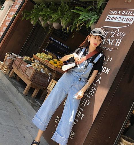 显瘦气质高腰背带裤。牛仔背带裤作为经典的单品之一,永远不会过时,阔腿裤的版型,比小脚裤都显瘦,而且各种身材的美眉都可以轻松驾驭,下面卷边的裤脚更是随意大方。