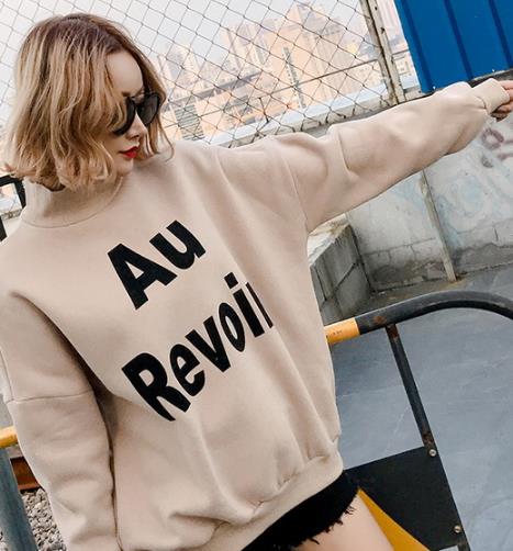 保暖字母短款绒衣。 比较有休闲的一件卫衣。大size 的宽松版型,搭配落肩袖的设计,不管什么身材的妹子都能轻松hold住。胸前简单的字母印花,整体简约大气。