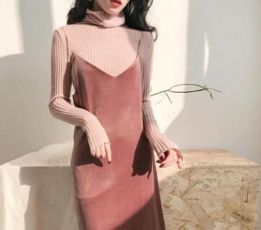 今年和丝绒连吊带连衣裙都很火,粉色丝绒连衣裙搭配同色系的内搭,营造温柔感,甜美减龄,少女感瞬间就回来了。丝绒款式的连衣裙比一般的连衣裙也要更保暖一点,视觉上还能增加华丽感,少女可以扮嫩,轻熟女可以扮高级,还是不错的。