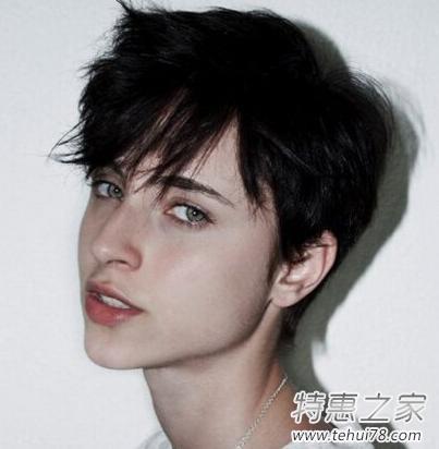 采用了东方人特有的黑色,额前线条流畅的刘海,在清爽的短发造型上,更是增添了一些女人味儿。