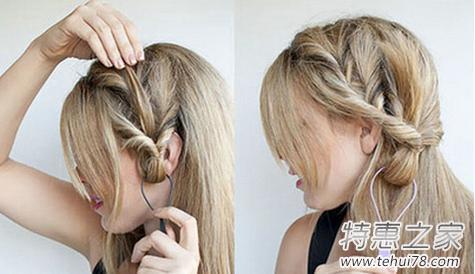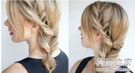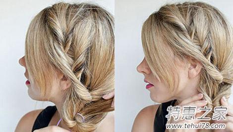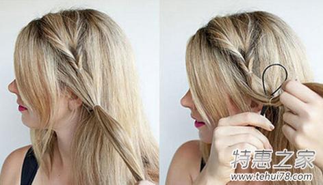 韩式发型扎法步骤6、将剩余的秀发全部利用一次性橡皮圈固定成一个侧扎发的造型,然后再进行穿发的步骤,可以根据秀发的长度决定发型的最终效果。