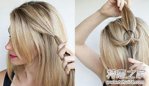 韩式发型扎法步骤2、接着,利用穿发工具将发尾穿过扎发上方的秀发之间(如图)
