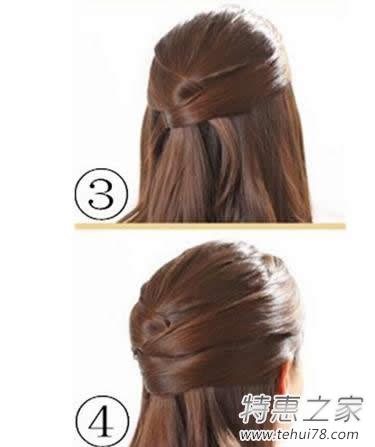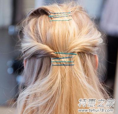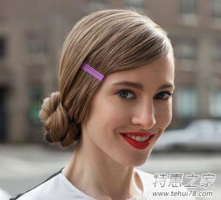 也可以用多个发夹把刘海全部梳上去,用发夹固定,再将后面的头发选出两股顺时针缠绕,最后把这三股头发用发夹再次固定,这样就OK啦!