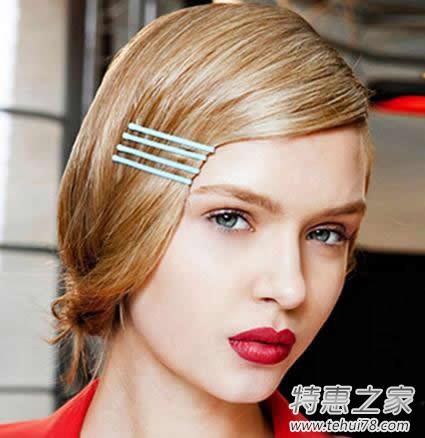 用多个发夹并排卡在刘海的一边,就能轻松打造出一款复古发型。