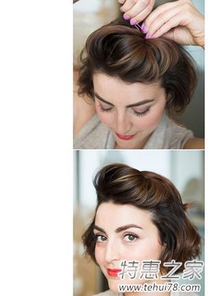把短刘海后背,尽量蓬松一些,然后用发夹固定,一个复古的发型就出来啦!
