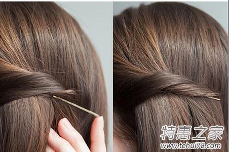 把两侧的两股头发分别绕一圈,然后用发夹固定即可。