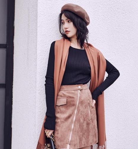 鹿皮绒半身包臀裙。秋冬微凉也挡不住一颗想秀大长腿的心,小小的A字短裙就能满足你的小心思。干净利落的拉链设计助你拉长腰部线条,直接用拉链穿脱简单快捷,剪裁可以更合身。假口袋、拉链的装饰增加立体层次感,鹿皮绒面料质感好,柔糯性超乎想象,上身效果舒适感爆棚!