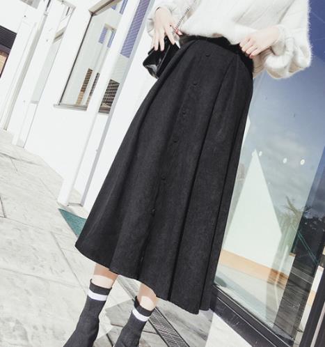 高腰半身中长裙。A型伞裙,高腰设计,线条美感,遮肉显瘦,穿出气质女人味,长度在秋冬季节非常合适,可以抵御寒风。磨毛面料比较有质感,会比较温暖,卡其色显气质。