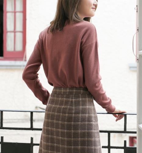 高腰毛呢格子短裙。基础的A字型版型,显瘦显高不在话下的高腰设计,对各种身材的妹子来说都是拉伸比例,显腰腿细长的神器无误穿出一种天生好身材的小心机。