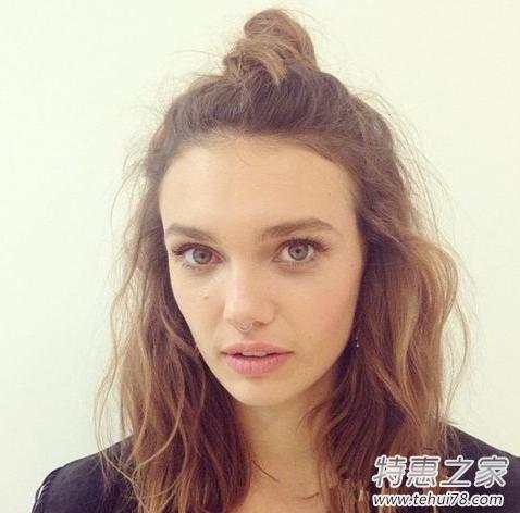 想要半丸子头完美修饰脸型,并且带有自己的风格,关键还是在刘海以及半披发上下功夫。