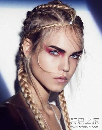 拳击辫其实很像我们小时候女生梳的双辫,只不过需要将发辫编到头顶,且更加紧密,以展现出干练、运动的风格。拳击辫看上去既简单运动,同时也能变着花样让整体造型看起来时髦无比。由于它通常是将整个头发往后梳,没有留出多余的刘海来修饰脸型,因此,它也是很显脸大的发型的之一,而且如果你没有精致的五官和小脸来撑,这个发型只会给你带来绝对的灾难!很多拥有天生好五官的外国明星、超模驾驭起来也是在美与丑之间徘徊。
