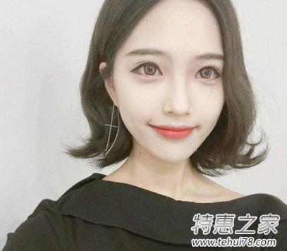 这款空气刘海的中短发,头发的长度刚好在肩膀的位置,在发尾吹一点点内扣的弧度,配上空气刘海,瞬间看起来就小了好几岁,显得整个人非常甜美清新,很适合女学生哦。
