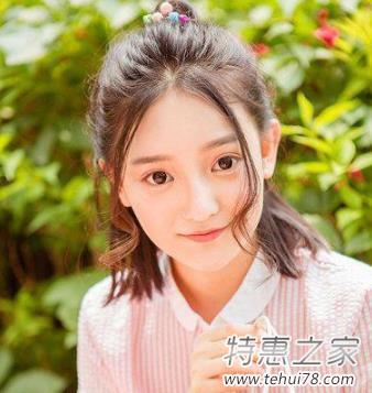 扎两个层次,发顶上的头发固定了一个小发髻,小女孩龙须刘海搭配的扎发发型,发尾贴着肩膀,中短发的女生们,尝试梳这款半扎丸子头发型,用电卷棒将不听话的发丝烫内扣就好了。