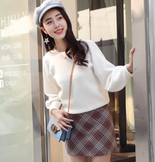 长发飘飘从前也是美女的象征之一,现在当然没有那么多死板的要求,但适合你的及肩长发不仅可以提升气质还可以凸造型。宽松的纯色蝙蝠衫紧致的格子包臀裙,适合小个子的软妹纸。