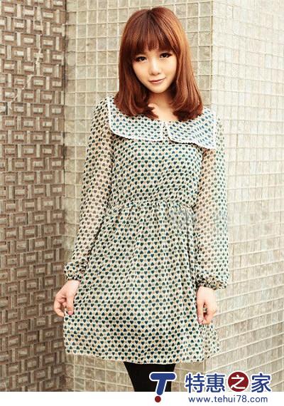 03 很显然,雪纺面料是打造淑女气质的最佳单品之一,通过在款式上的修饰设计,便能让你在最短时间内SHOW出浓浓女人味,带有爱心图案的大翻领雪纺连衣裙古典又妖艳,相当惹眼。