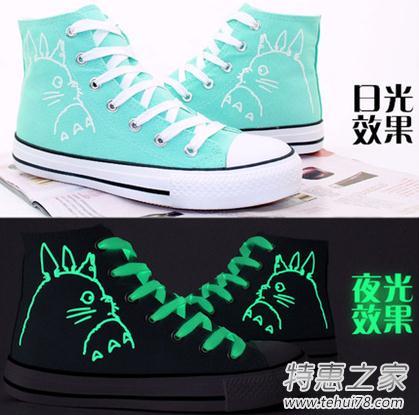 卡通印花系带高帮帆布鞋,鞋子上的男孩女孩印花,简单的勾勒,很有小清新的feel,而且图案还有夜光的效果,很炫酷哦!