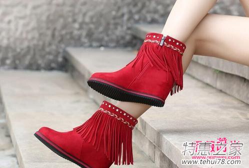 内增高短靴加入流苏的元素更加潮流时尚哦,个性金属装饰点缀简直不能更美了,穿上它魅力值立马提升。