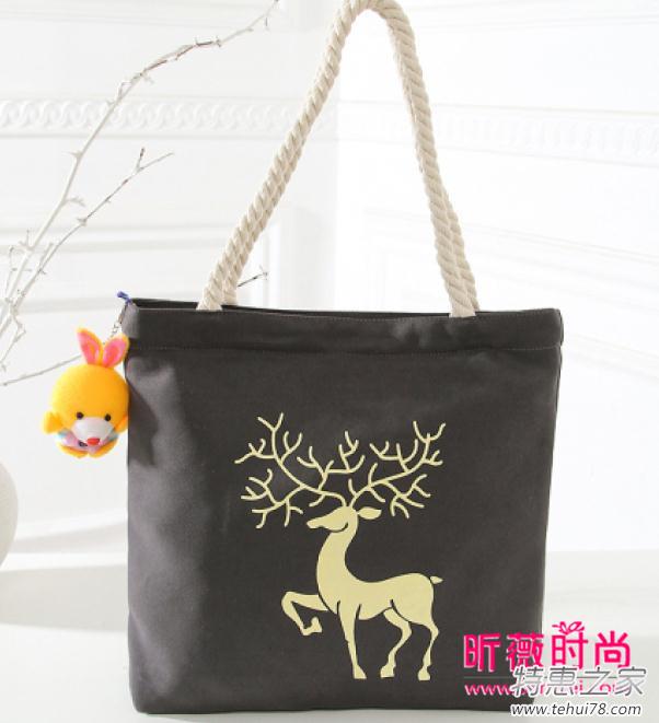 小清新文艺布包。推荐这款棉麻面料款的文艺布包,很有学院风味道的一款包包哟!这件宝宝是一款很简单设计的字母印花包,可以搭配可爱的小布娃娃挂件哟!