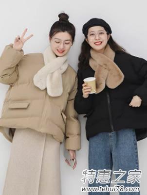 无论是杏色还是浅棕色,都是非常好看百搭的。这样的围巾可以搭配没有领子的棉服或者毛呢大衣,相当的可爱啦,让人觉得这个姑娘一顶非常精致的。