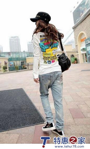 05 粉色和灰色搭配,甜而不腻的清新气质,与蓝色牛仔裤碰撞出活力与激情,换成及踝半身裙则显优雅清秀。低调白色邮戳图案,简约却不乏深意,耐看至极。