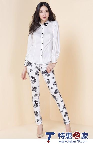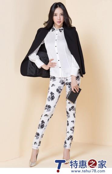 01 精致小翻领让时光瞬间奔回背着双肩包,早晨向太阳问好的年代,若不是那些钉珠小花在领尖绽放,折射的刺目光泽将思绪拉回,或许还真会沉浸过去而无法自拔。花色修身长裤从夏季流行到秋冬依然觉得时尚味道浓郁,若不想就此被多看两眼然后被忘记,披上西装外套,配上同色系手拿包,能让植入别人脑海的功力大大增强。