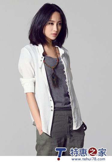 06 简约至极的白衬衣仅仅在衣领和袖口用黑色线条来装点,没有其他颜色的参与,干净、整洁的模样将好姑娘的印象映入眼球、植入脑海。相比中规中矩的穿着,将衣袖向上挽起更能够将形象装扮生动化。