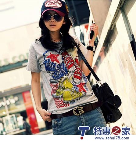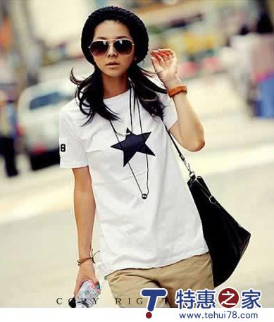 太多裙裾飞扬,太多蕾丝亮片,太多艳丽妖娆,这时简单、阳光的T恤就更显独特。清纯、简约、明朗的装扮,让人眼前一亮。简单大方的剪裁,搭配时尚别致的图案,同样可以让你成为先锋时尚达人。