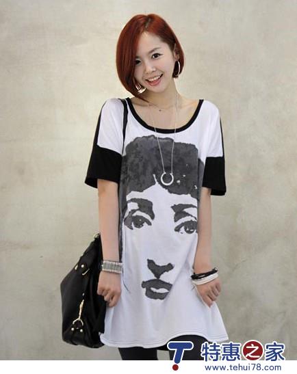 01 永不过时的黑白色系搭配,宽松休闲的中长款剪裁,舒适大方的纯棉面料,无论是逛街、出游还是约会都很适用。T恤前面放大版的赫本头像剪影,个性、时尚。