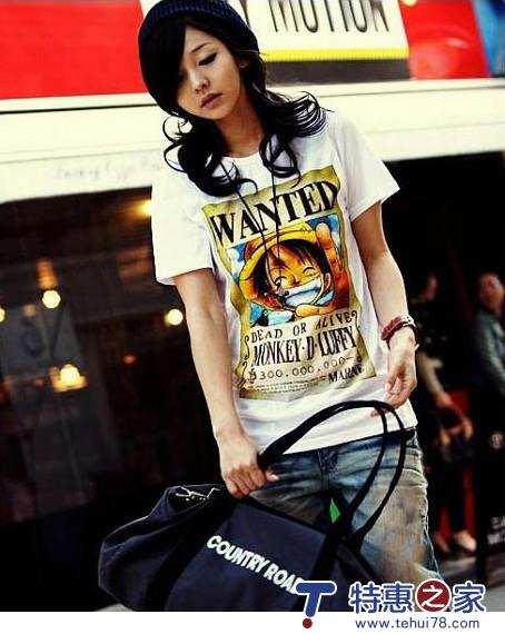 06 时下流行的任何元素都可以用到服装中展示时尚,明星头像可以,乐队名称可以,火热的动画片人物同样可以。海贼王“草帽路飞”,穿上它像路飞追寻梦想一样去追寻时尚吧。