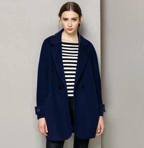 在追求时尚的道路上,会遇到很多经典元素,这时,我们要做的不是摒弃,而是融合,将时尚与经典完美结合,才是最值得致敬的,沉稳内敛的藏青+中长款式+双排扣设计+茧型轮廓,就是最好的例子。