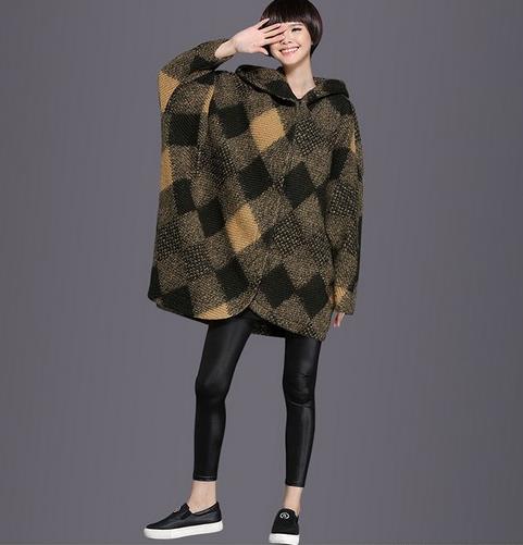 想瘦下来的心和渴望美食的胃每天都在PK,掐指一算,想瘦下来的心获胜的次数寥寥无几少得可怜,摸摸身上的肉却多得欲哭无泪。宽松的蝙蝠袖,冬季显瘦力爆棚,再加上格纹图案,增添几分复古味道。