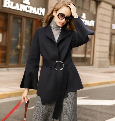 不规则收腰毛呢外套搭配阔腿裤,优雅知性美。纯黑色的不规则收腰毛呢外套,底气一定很足,不规则收腰毛呢外套材质的高端赋予了线条别样的自信,不规则收腰毛呢外套通过圆环收腰形成松紧有致的职场优雅知性美,只有线条最动人。