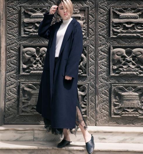 西装大翻领和毛呢外套同时出现已经不是多么稀奇的事情了,我们习惯了这种方式,但却并不会觉得乏味,也许这就是经典的意义所在吧。开叉设计够高够独特,没有了旗袍的婀娜诱人,却多了毛呢的与众不同。