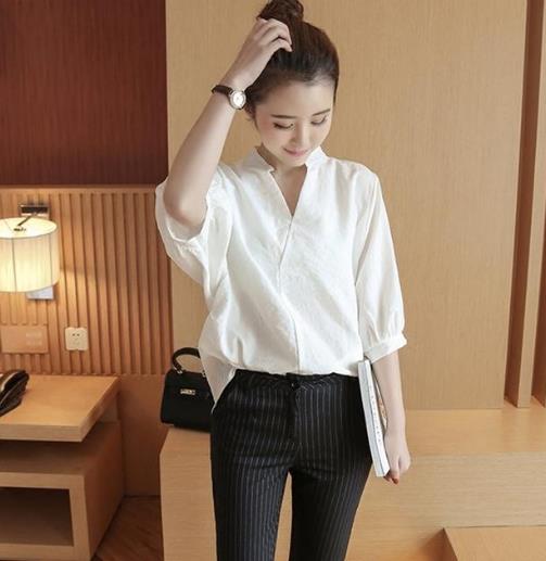 精选优质棉麻面料透气舒适,宽松五分袖设计修饰纤细手臂,精致V领衬托脸型,纯色简洁大方好穿搭。