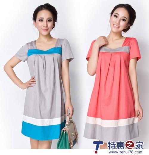 02 这款孕妇连衣裙在网上特别受欢迎,款式简洁大气,撞色的运用,用色彩的语言诠释时尚,两种色彩氛围,你可以选择素雅也可以选择艳丽。小方领十分别致,胸间的褶皱很有立体感哦,足以应对日益扩张的曲线,修身显瘦,准妈咪们的小肚肚也不会显得那么凸出了。面料是100%纯棉,柔软呵肤。