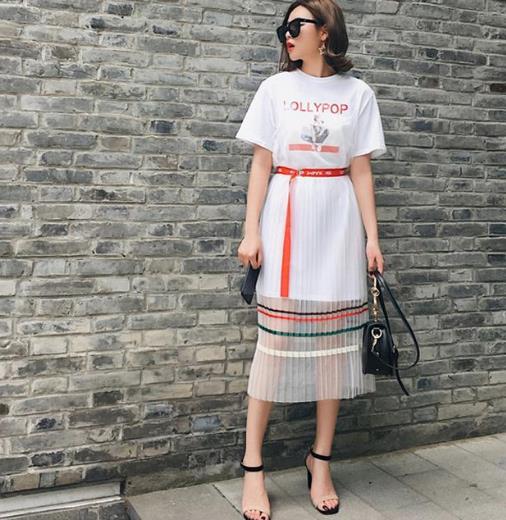 t恤裙,两件单独拎出来穿,网纱吊带裙,今年这种叠穿可真是时髦到不行了凸显腰部曲线,也是很时髦百搭的单品哦,休闲又不失女人味。