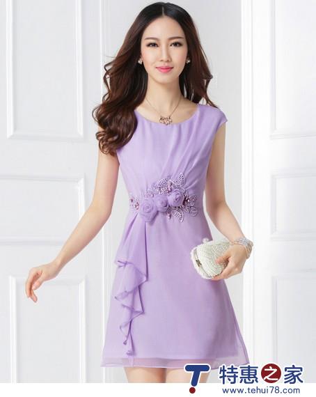 02 女人都有优雅的时候,优雅的女人,需要优雅的连衣裙。剪裁合体修身,身体的曲线总是被修饰得很迷人,圆领在这里显得很大方,最出彩的还是腰间的欧根纱盘花,仿若艺术品一般精美,其下还有荷叶边垂坠飘散,行走之间说不出的动人。