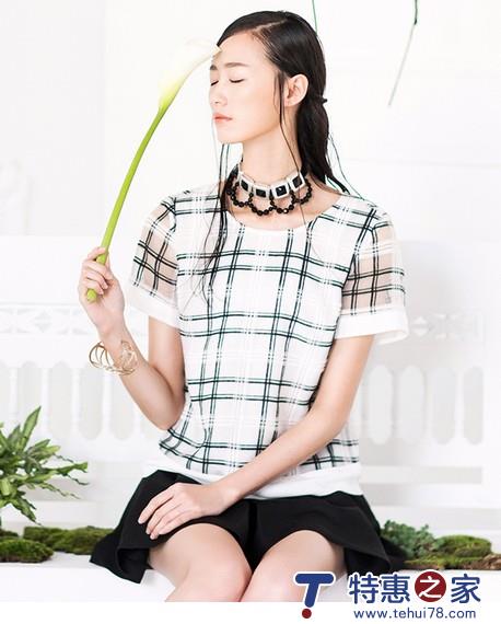 07 欧根纱与雪纺也是好朋友,由此打造的格子雪纺衫塑造一个大方清爽的造型,给人的感觉就是很自信!版型是宽松的H型,不会有束缚,就是在短袖横行街头的炎炎夏日,也能带给你足够的凉意。
