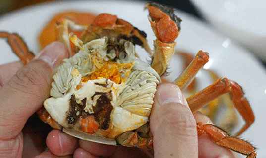 想要让蟹身吃的更有味道,那么则需要在上边放一点醋,这样就很快能够把蟹身之中的肉给吃完毕。在食用蟹身的过程中,就是要它变成两半,这个时候我们看见的蟹肉是完美的,形状是呈现为丝状。在撕的时候,记住的就是要从蟹脚的部位开始,就能够慢慢剥出其中的蟹肉,怎样才算是吃干净呢?那就是蟹壳的部分是完全呈现为半透明这样的形状。