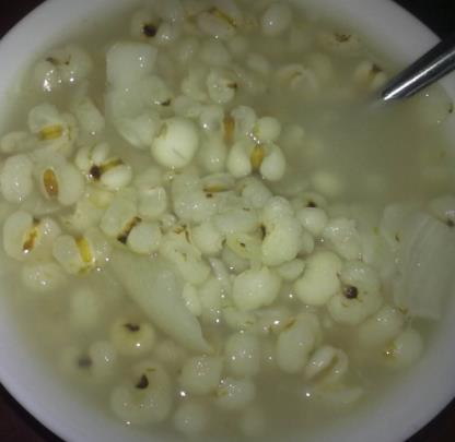 薏米有着利水消肿的功效,经常食用可以改善水肿现象,对扩张血管和降低血糖有一定的作用。茨实有着补充气血,调和脾胃的作用,还可以促进人体血液循环,使人脸色变得红润、白皙。