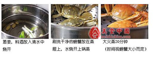 3、锅底放适量水,放上蒸屉蒸15—20分钟。蒸煮过程中不宜开盖,要一次性蒸透,否则影响蟹的口味提示:在蒸的过程中,可以将姜拍碎切丁放入醋中,等蒸熟后,便可沾醋食用了。