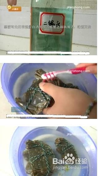 1、蒸螃蟹前,先用小刷子清理螃蟹的蟹壳和蟹腿,并放入清水中养半天,使之排净腹中污物提示:蒸前可先用将适量白酒倒在活螃蟹上稍稍腌渍,味道更佳。