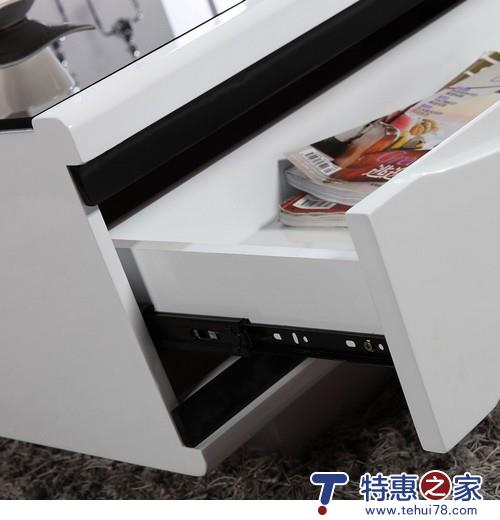 04 迷你的客厅已经放不下餐桌,用茶几代替好了。简约的黑白配色,高雅的钢琴烤漆,完全可以成为记录美食时的完美背景。巧妙的抽屉设计,增强了收纳功能,吹着凉风,品着美食,随手拿出一本精美的杂质翻翻,好不惬意。